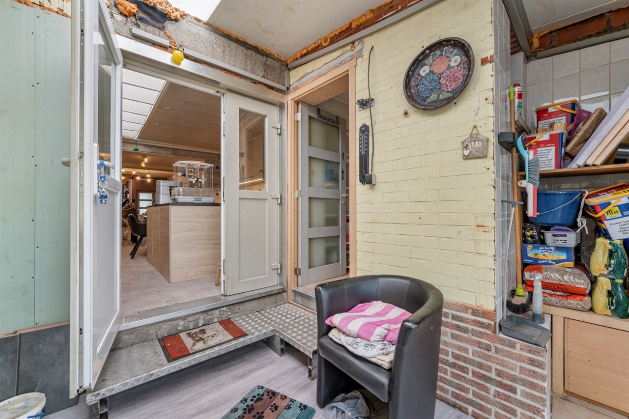 De woning beschikt over een inkomhal, een woonkamer, keuken en veranda die zorgt voor extra lichtinval en connectie met het terras. Daarnaast is er een badkamer aanwezig. Op de verdieping bevinden zich twee slaapkamers en een zolderruimte die perfect kan dienen voor uitbreiding of hobbyruimte. Buiten is er een aangenaam terras, ideaal om in alle rust te genieten.