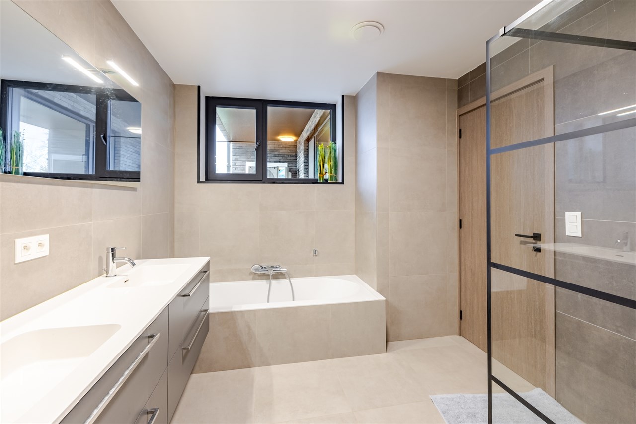 Op de eerste verdieping zijn er twee ruime slaapkamers, waarvan één met dressing, aangevuld met een derde volwaardige slaapkamer. De badkamer is uitgerust met zowel een ligbad als een douche en biedt optimaal comfort voor het hele gezin.