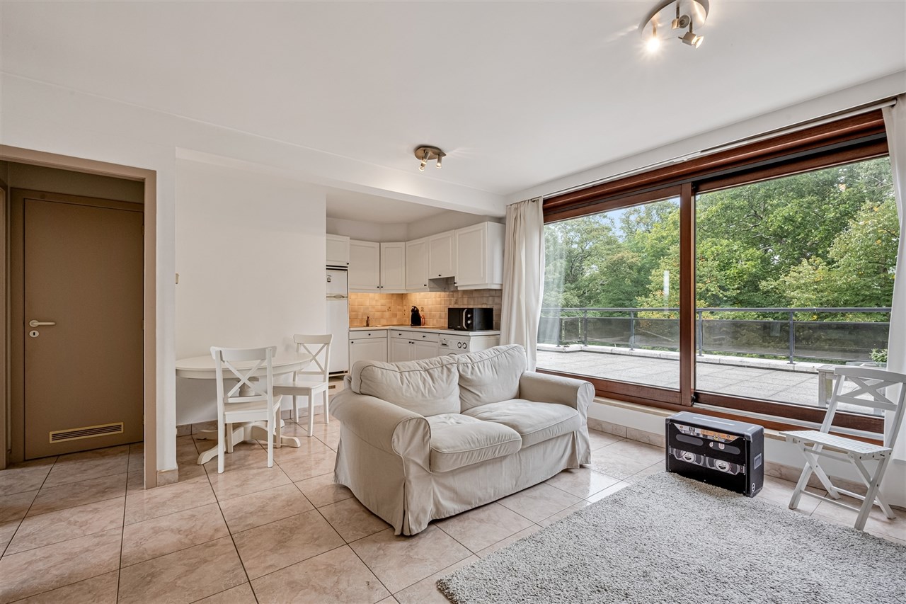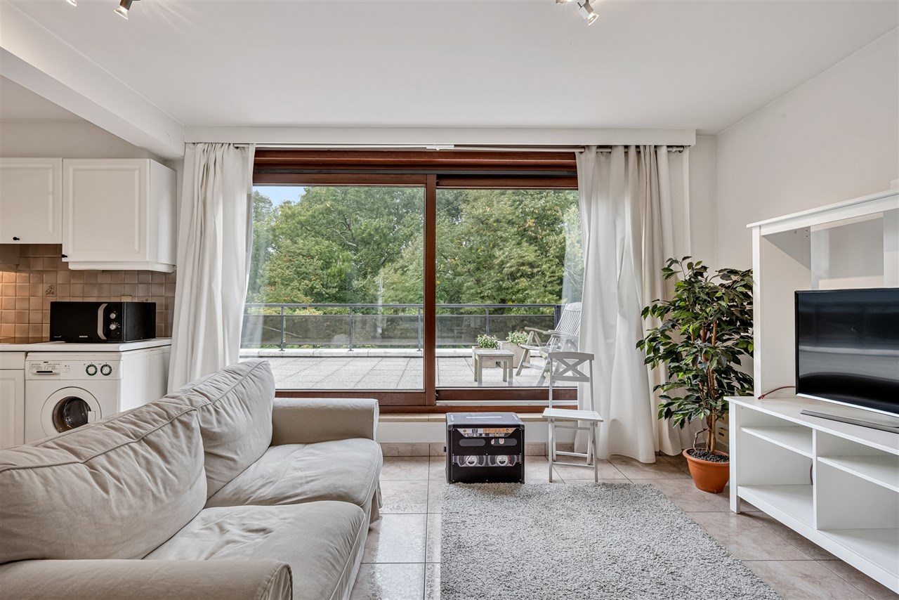 Het appartement is gelegen op de vierde verdieping. U komt binnen in de woonkamer, die uitgeeft op het terras dat uitkijkt op het Groenevalleipark, een ingerichte keuken, 2 slaapkamers, waarvan 1 met een aansluitend terras, en een badkamer, met toilet en douche.