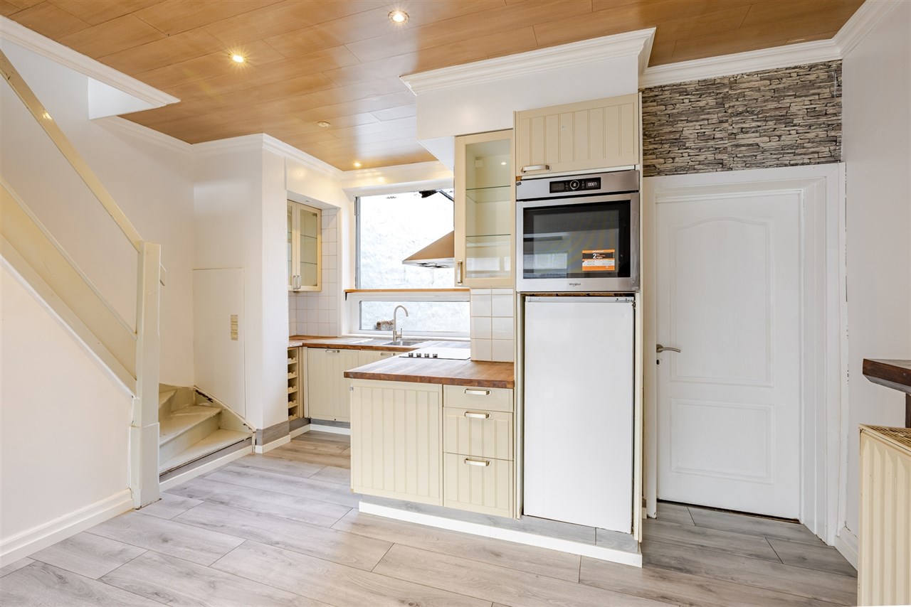 De indeling is als volgt: een inkomhal leidt naar de gezellige leefruimte met aansluitend de keuken. Achteraan bevindt zich de badkamer, uitgerust met toilet, douche en lavabo. Op de eerste verdieping vinden we twee slaapkamers terug, met daarboven een derde zolderkamer. Buiten beschikt de woning over een terras met aansluitende tuin.