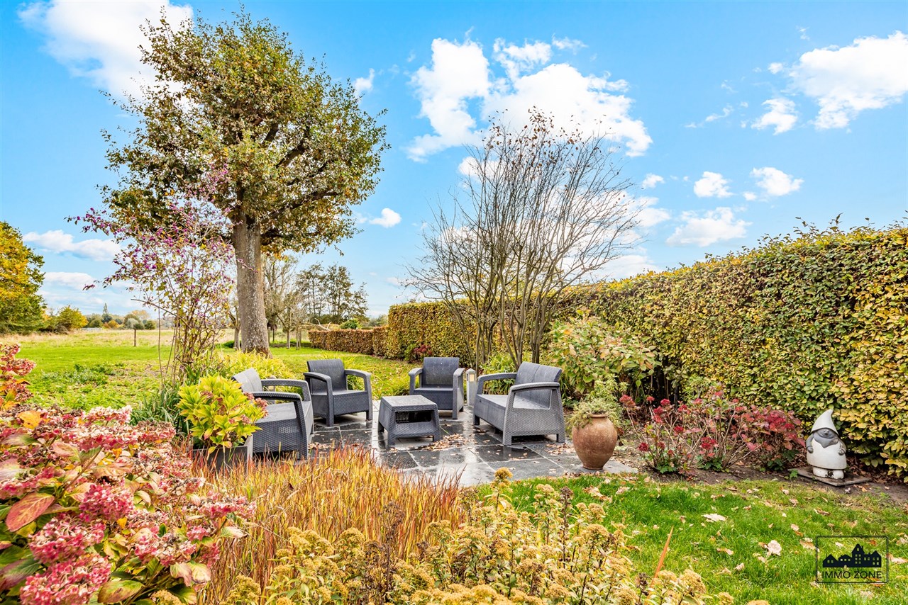 De grote, aangelegde tuin met vrij uitzicht over de omliggende velden nodigt uit tot ontspannen, tuinieren of gezellig samenzijn met familie en vrienden.