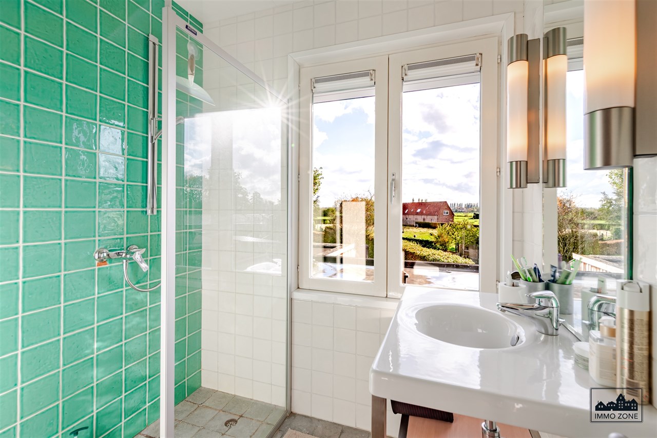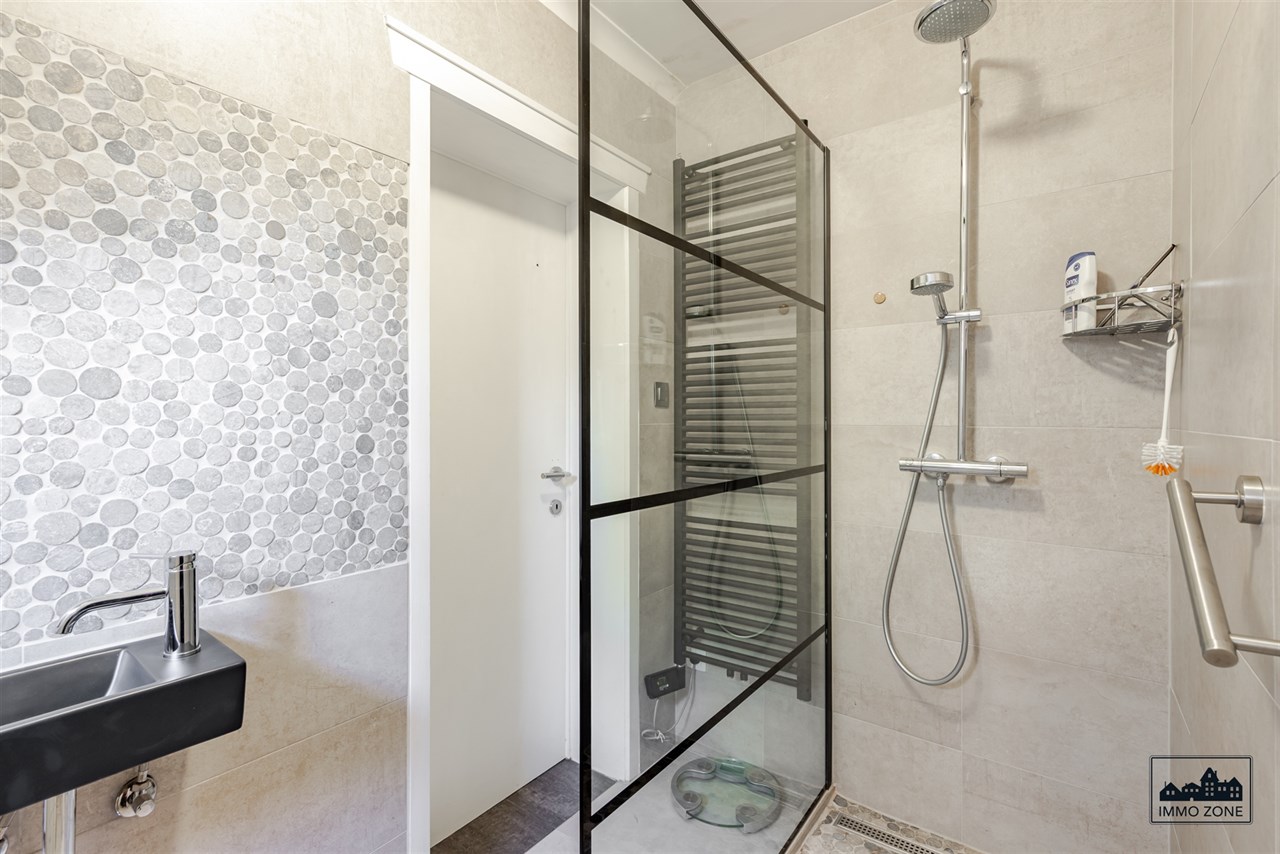 Op het gelijkvloers bevindt zich ook een eerste badkamer met moderne inloopdouche. Op de bovenverdieping zijn er twee ruime slaapkamers, een compactere extra slaapkamer of bureel en een tweede badkamer.