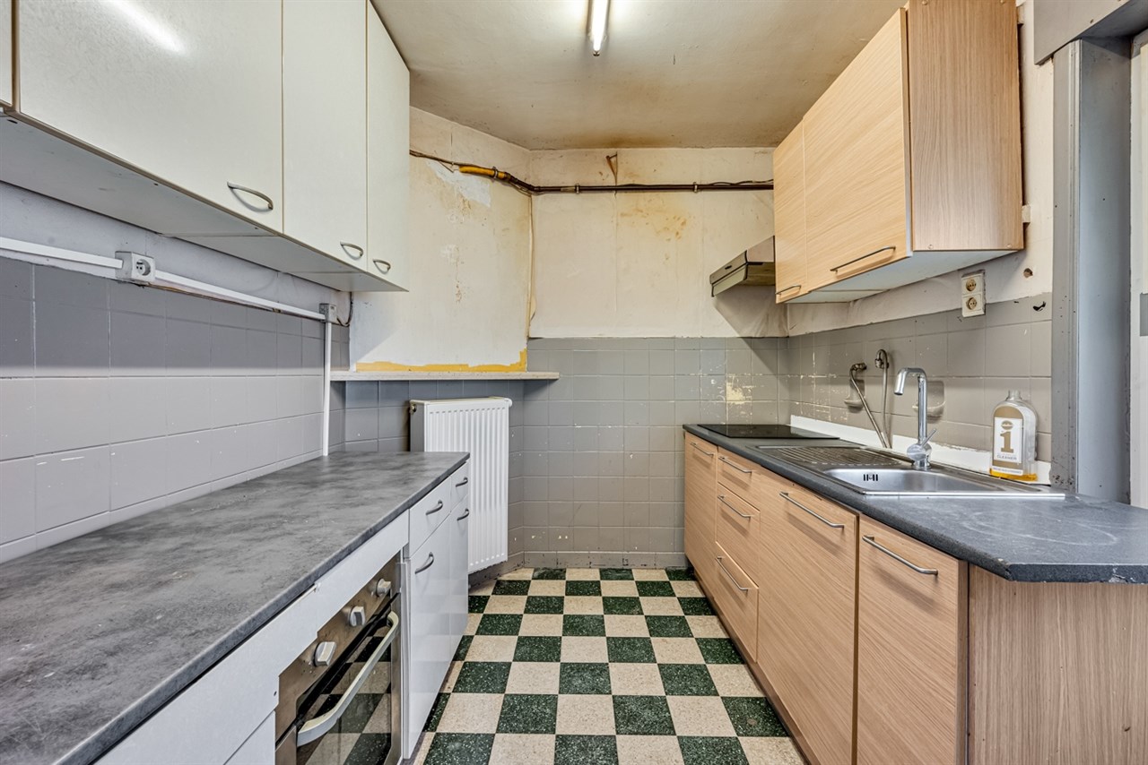 Bij het binnenkomen wordt u verwelkomd in een lichtrijke woonkamer die aansluit op een keuken die aan vernieuwing toe is. Op het gelijkvloers vindt u ook de badkamer, een praktische berging en een garage met rechtstreekse toegang tot de woning. Achteraan nodigen een zonnige tuin en een gezellig terras uit tot ontspanning en buitenleven.