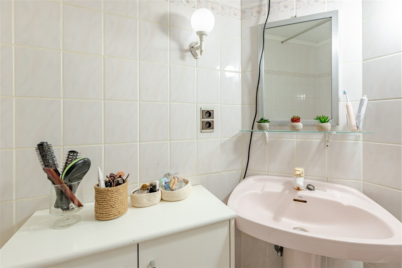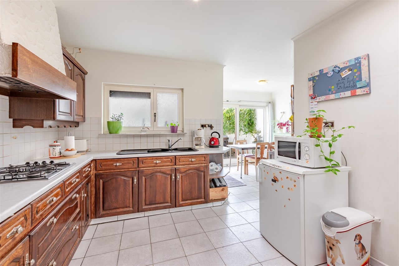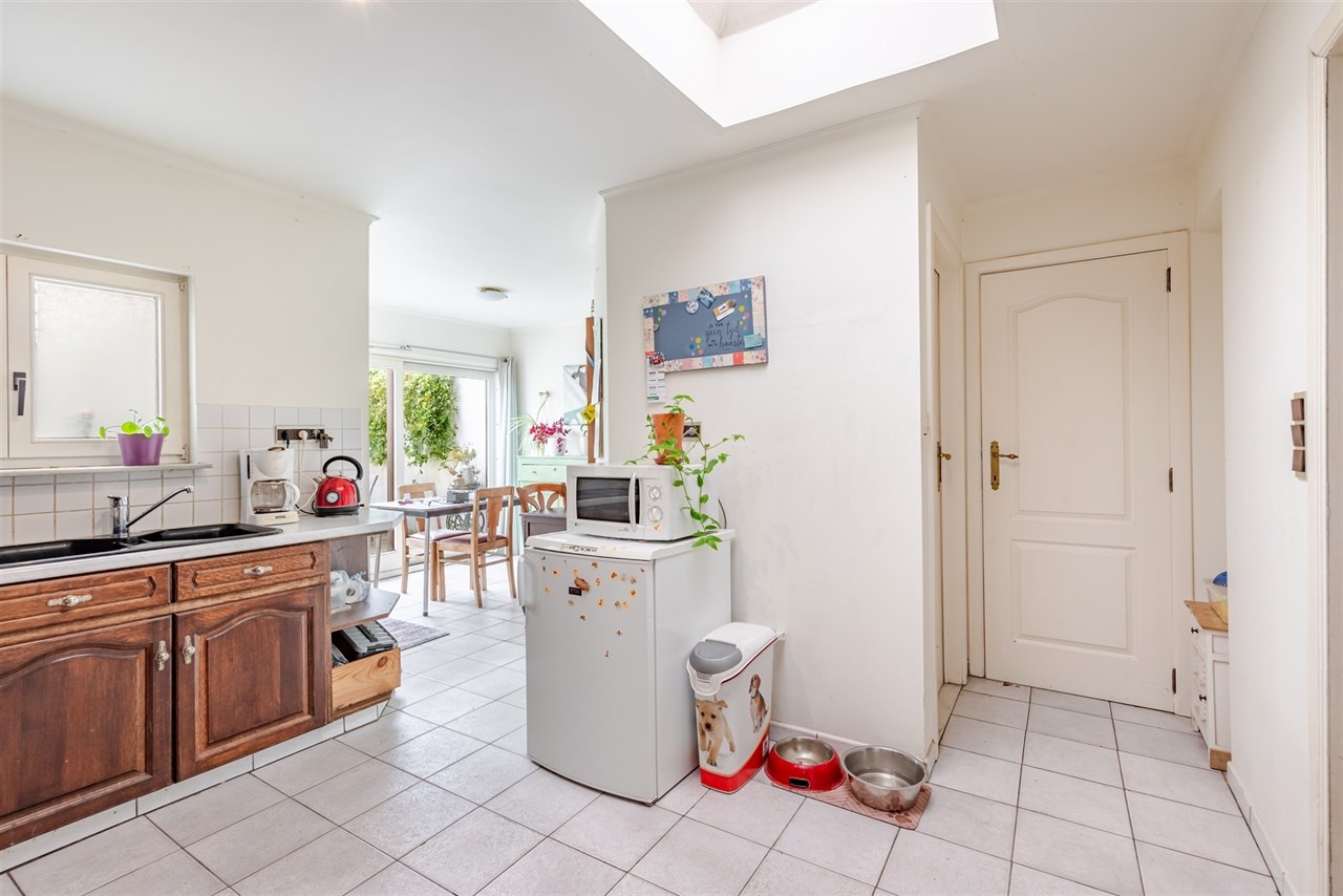 Op het gelijkvloers bevinden zich de inkomhal, leefruimte, keuken met eetplaats met aansluiting naar de leuke tuin, badkamer, toilet en opbergruimte.