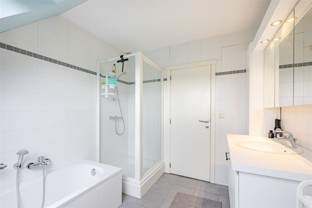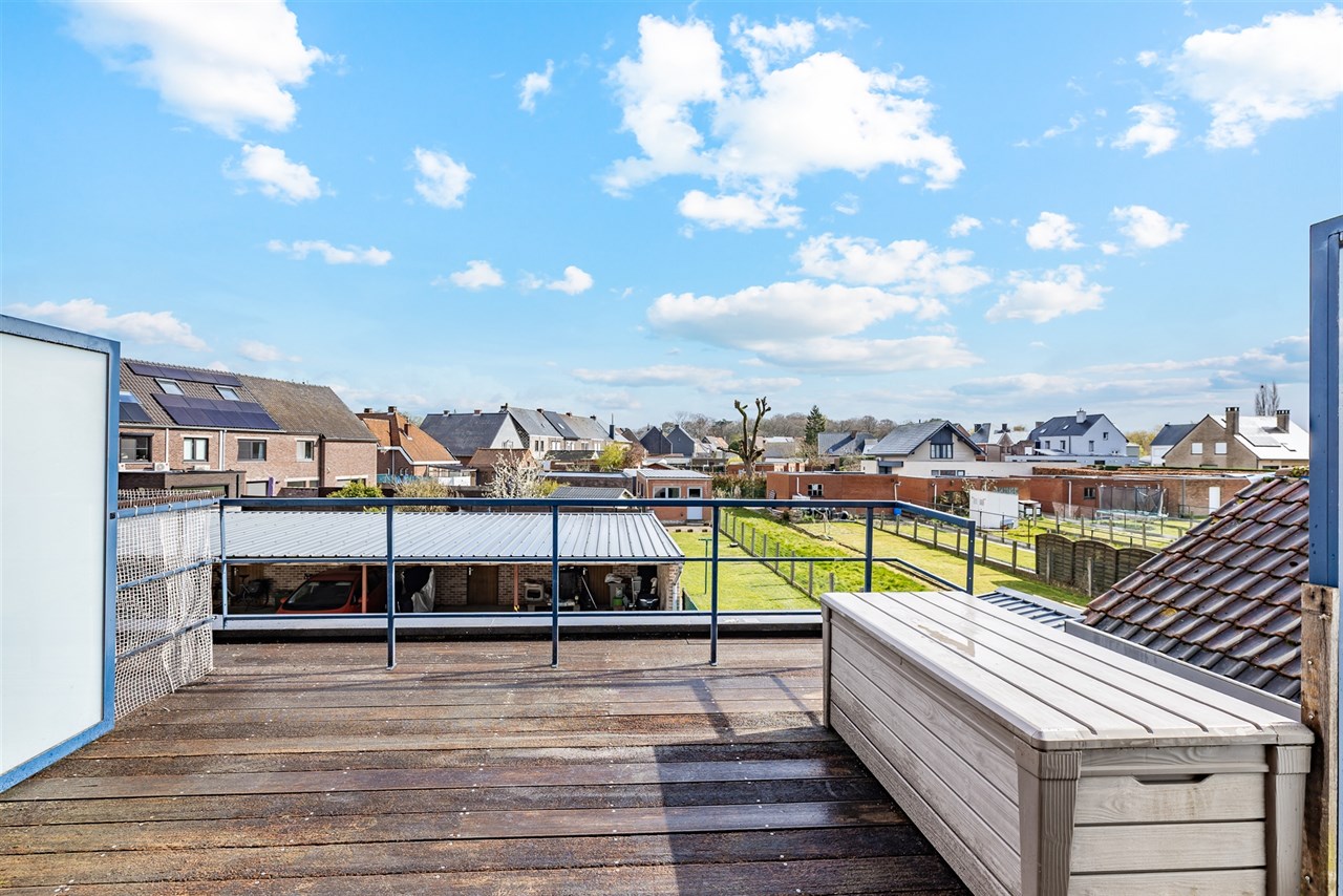 Het appartement is toegankelijk vanop de eerste verdieping. Vanuit de privatieve inkomhal (met apart toilet), kom je rechtstreeks in de open leefruimte mét open keuken en terras (zuidoost). Aansluitend bij de keuken is er een praktische berging met aansluitingen voor wasmachine en droogkast). Op de tweede verdieping bevinden zich een nachthal, 2 slaapkamers en de badkamer (met toilet, 1 wastafel, bad en afzonderlijke douche). Als kers op de taart geniet dit appartement op een derde bouwlaag (onder het dak) over een zeer ruime bergzolder, toegankelijk vanuit de nachthal.
