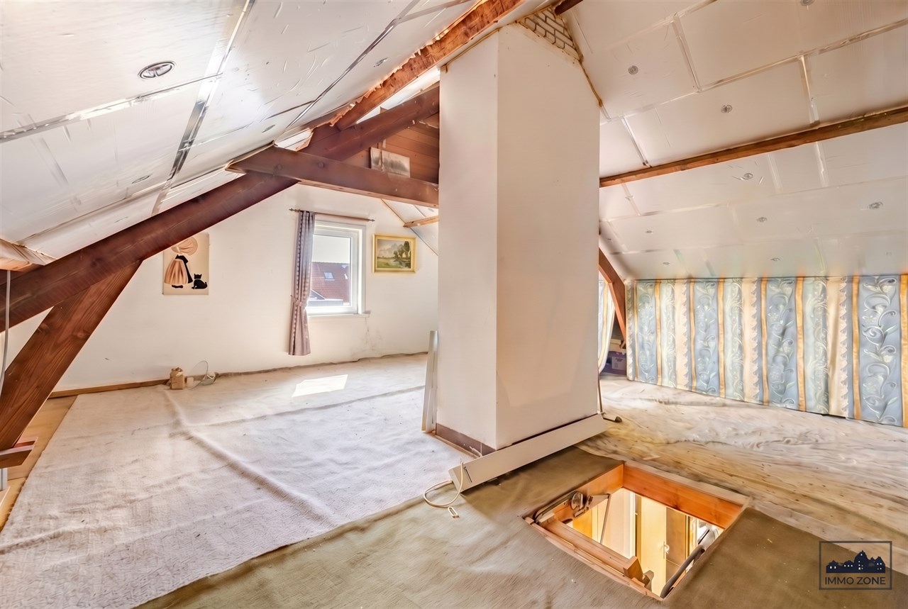 Bent u op zoek naar een woning op een rustige locatie in een doodlopende straat? Op de stadsrand met vlotte aansluiting naar alle invalswegen vindt u deze opportuniteit. Deze halfopen bebouwing op 366 m2 bestaat uit een inkomhal met apart toilet, een zeer lichtrijke leefruimte met gashaard en een keuken met toegang tot een kelderberging. Op de 1ste verdieping zijn er 3 slaapkamers (18 m2, 14 m2 en 7m2) en een badkamer met inloopdouche en toilet. Via een zoldertrap bereikt u de zolderverdieping. Deze is perfect nog verder af te werken als volwaardige hobbyruimte of eventueel 4de slaapkamer.