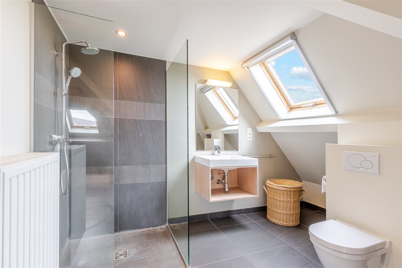 Op de eerste verdieping vinden we 3 slaapkamers (27m², 31m² & 35m²) met ingebouwde kasten waarvan 2 met en-suite badkamer en dressing. Op de tweede verdieping treffen we een ruime zolder (34m²) die te bereiken is via een vaste trap.