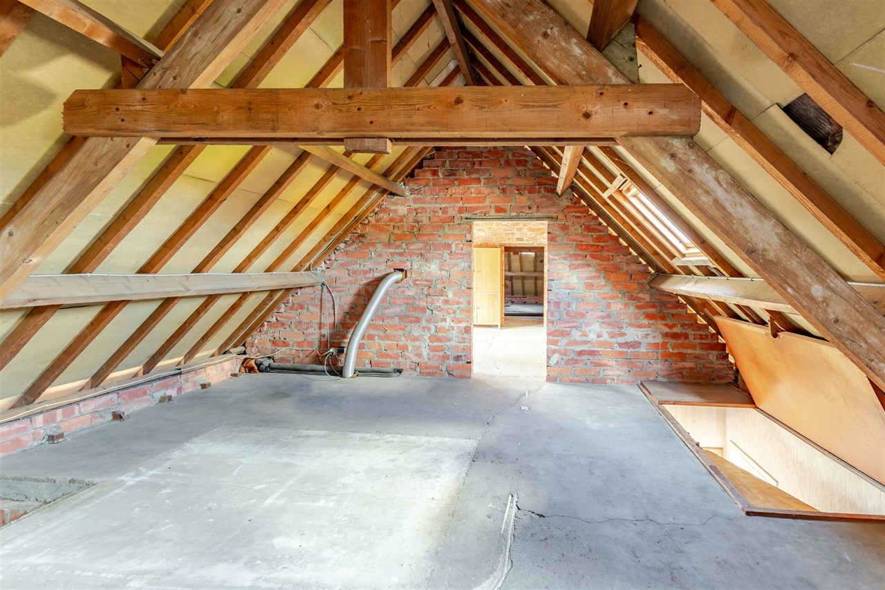 Op de bovenverdieping die beschikbaar is met vaste trap, bevindt zich een onafgewerkte ruimte die volledig naar wens kan worden ingevuld, en waar nog veel potentieel te vinden is.