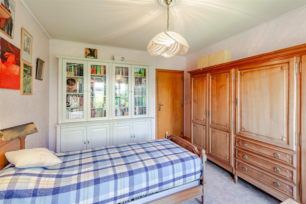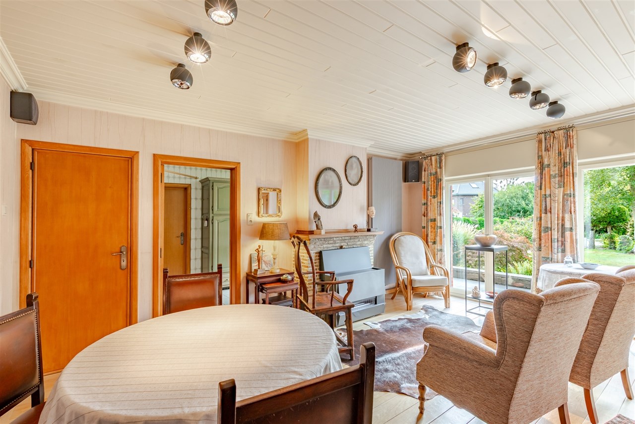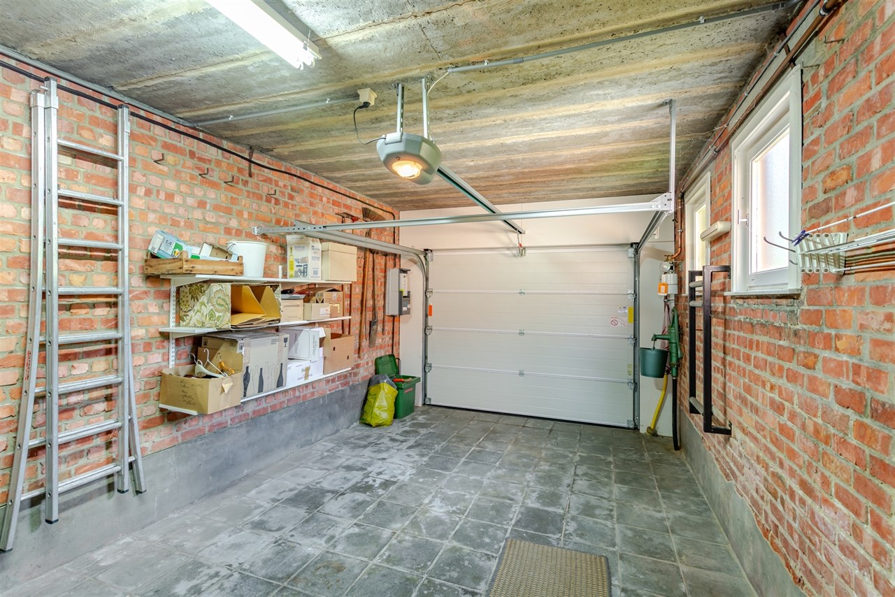 Bij het binnenkomen treft u een centrale inkomhal die u enerzijds leidt naar twee gelijkvloerse slaapkamers, een badkamer en apart toilet en anderzijds naar een zeer leuke lichtrijke leef- en eetruimte die naadloos in verbinding staat met de ingerichte keuken. Vanuit de leefruimte heeft u een mooi zicht op de tuin en directe toegang tot het terras, wat dit een heerlijke plek maakt voor gezellig samenzijn. Praktisch comfort wordt verder geboden door een grote bergruimte, kelder en de ruime inpandige garage met automatische poort.