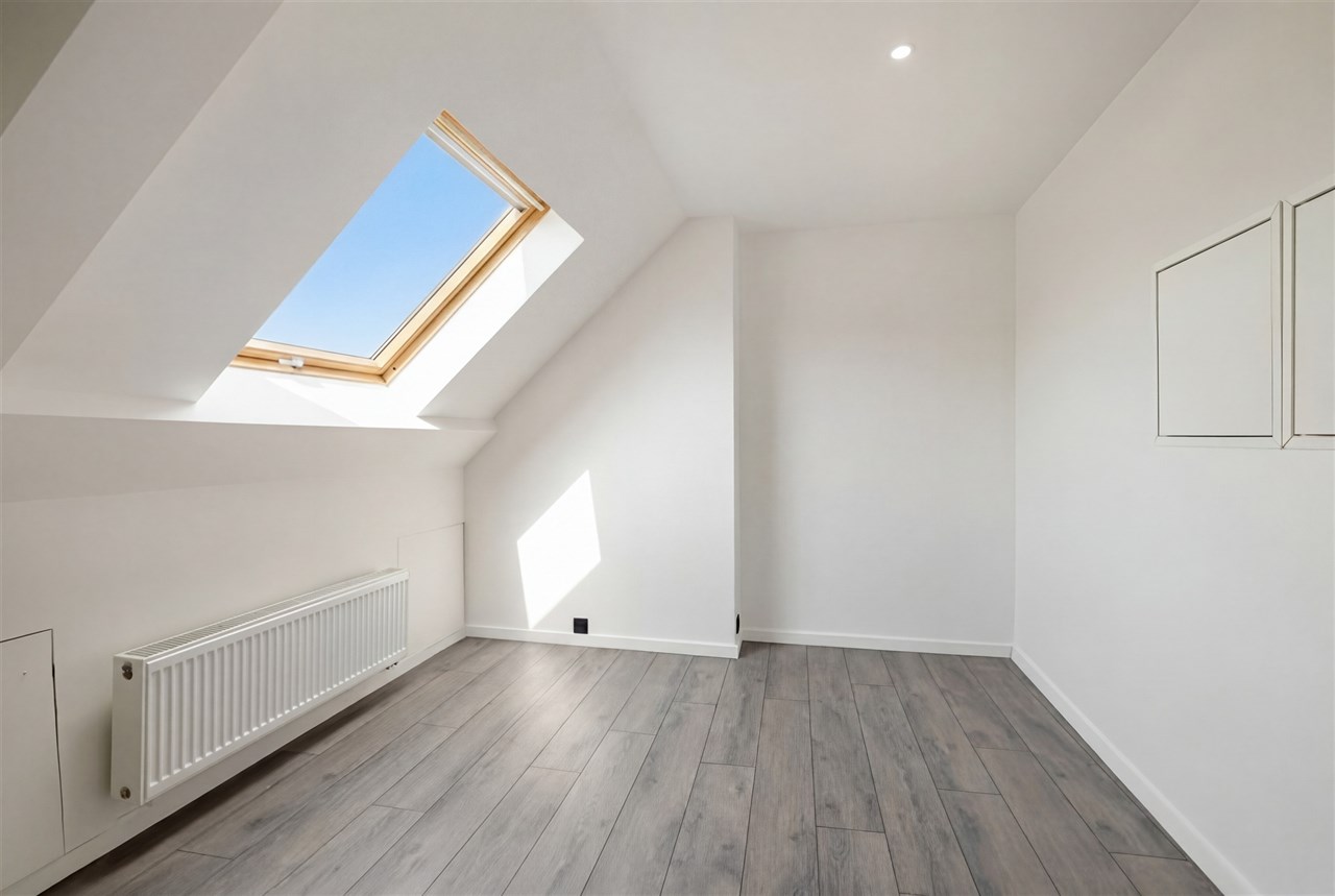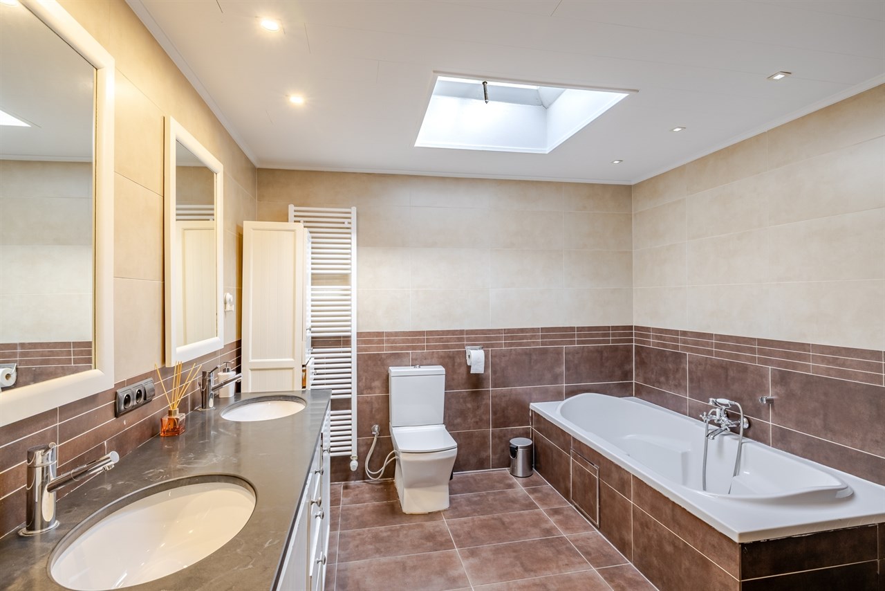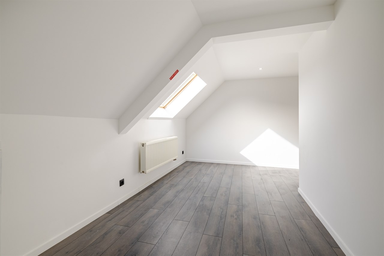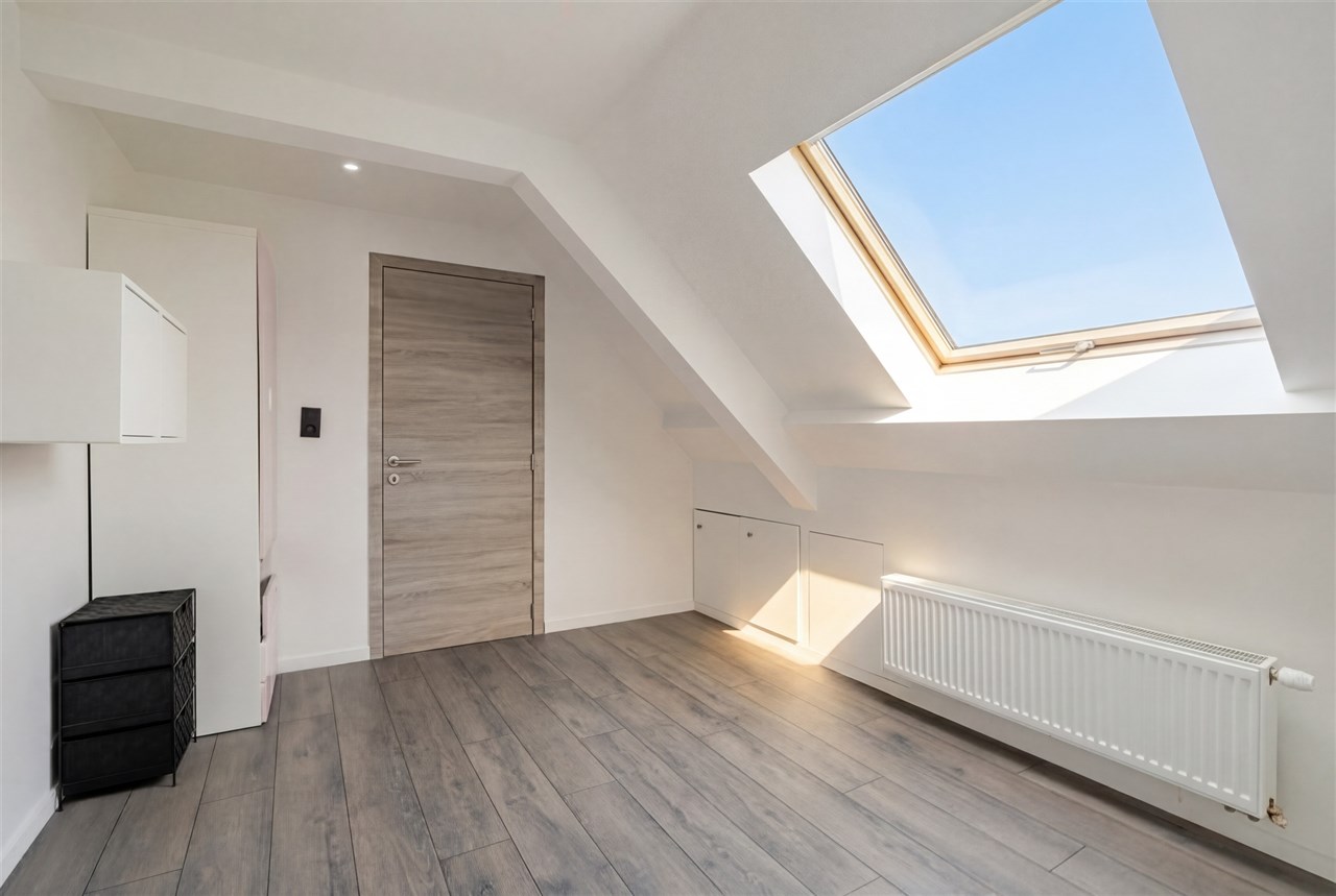 Op de eerste verdieping vinden we 2 ruime slaapkamers en een tweede badkamer die voorzien is van een meubel, douche en tweede toilet. Op de tweede verdieping vinden we nog eens 2 slaapkamers.
