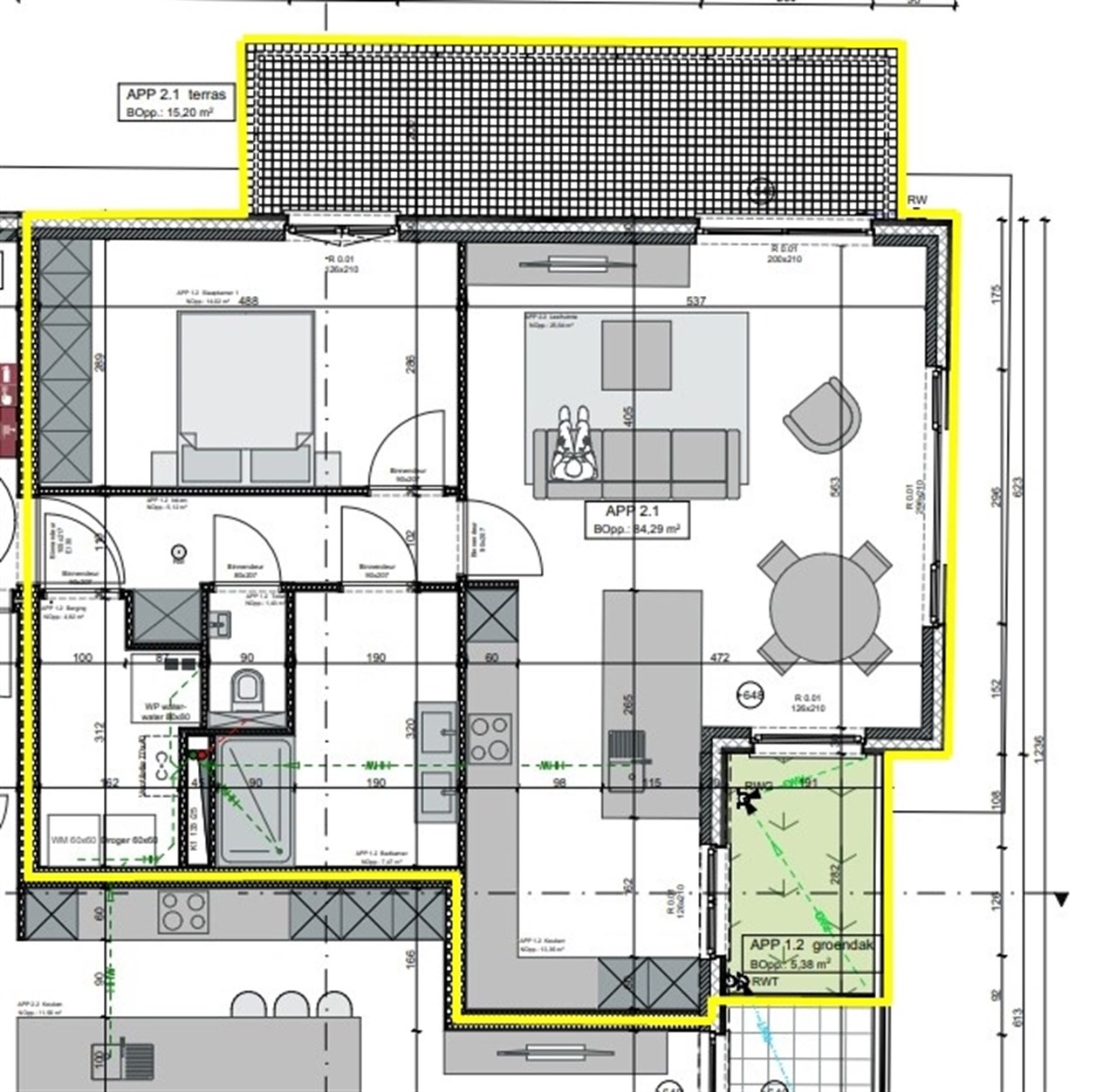Het appartement wordt schilderklaar afgeleverd, en eigen keuzes zijn in deze fase nog mogelijk.