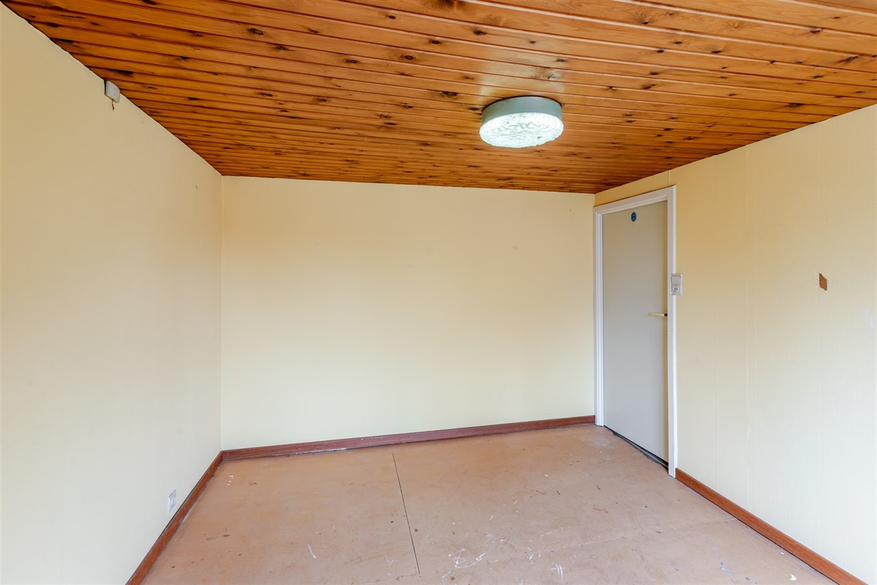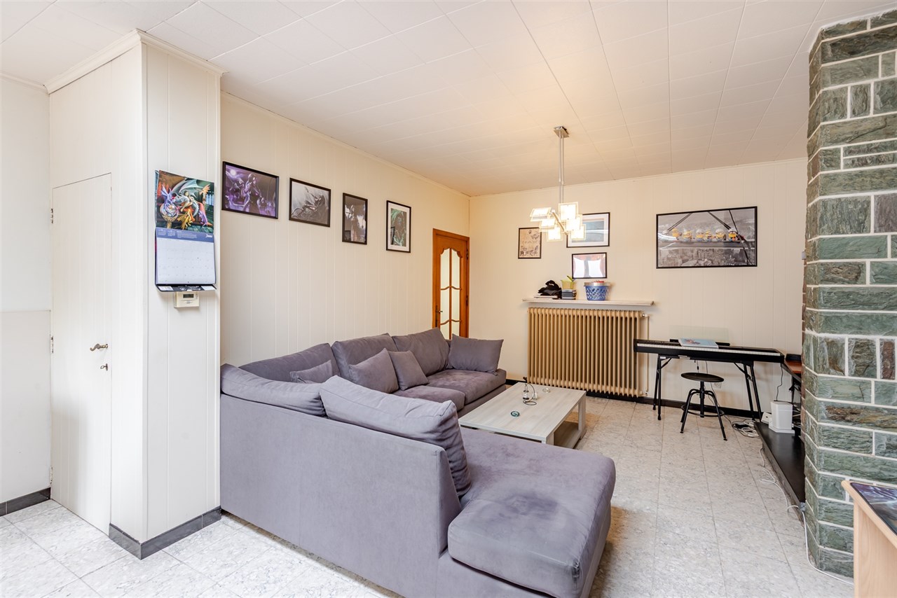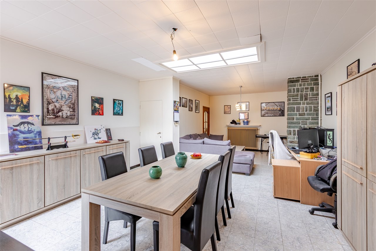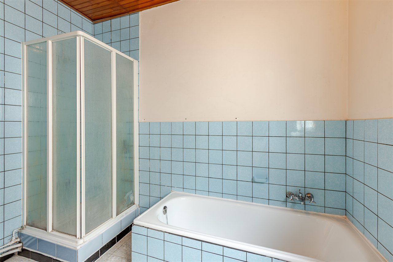 De woning omvat bij binnenkomst een polyvalente ruimte, gevolgd door de lichtrijke leefruimte en praktische keuken. Achtergelegen vinden we de badkamer die voorzien is van een badkamermeubel, ligbad, douche en toilet.