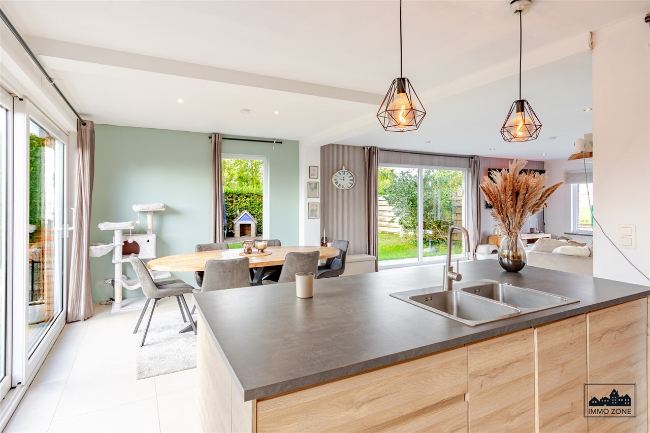 Bij het binnenkomen wordt u verwelkomd in de gezellige leefruimte met open keuken, waar veel licht en ruimtegevoel centraal staan, een ideale plek om van alle seizoenen te genieten van de tuin door de grote glaspartijen. Aansluitend aan de keuken bevindt zich een praktische berging met plek voor was- en droogmachine.